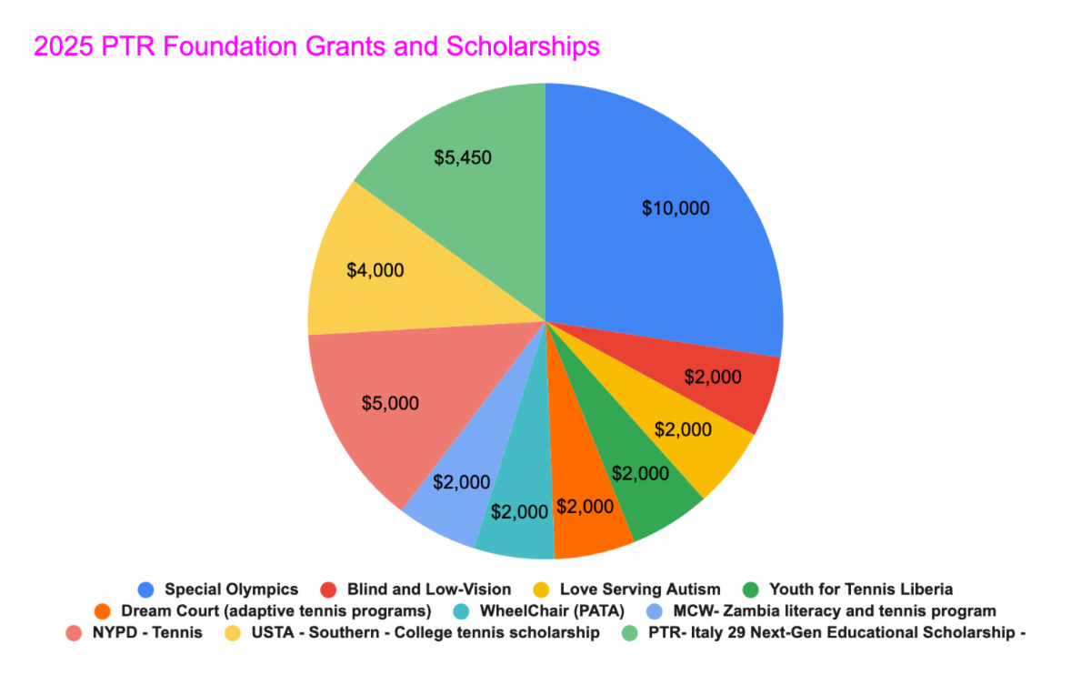 We want to express our heartfelt gratitude on behalf of the children, adults, and tennis professionals who benefit from the PTR Foundation. Thank you for your unwavering support of our mission to make tennis accessible to everyone.
